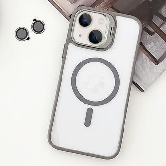 For iPhone 13 MagSafe Acrylic Hybrid TPU Holder Phone Case with Lens film(Grey)