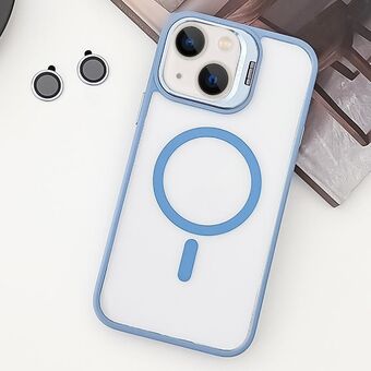 For iPhone 13 MagSafe Acrylic Hybrid TPU Holder Phone Case with Lens film(Light Blue)