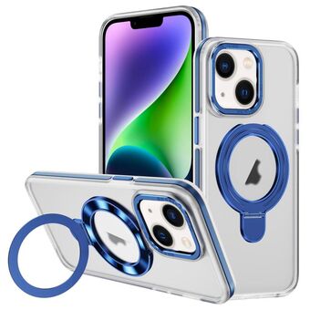 For iPhone 14 Transparent MagSafe Ring Holder Phone Case(Blue)