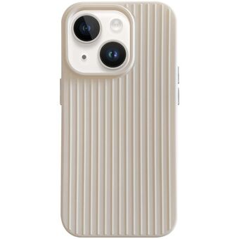 For iPhone 14 Macaroon Tile Stripe TPU Hybrid PC Phone Case(Beige)