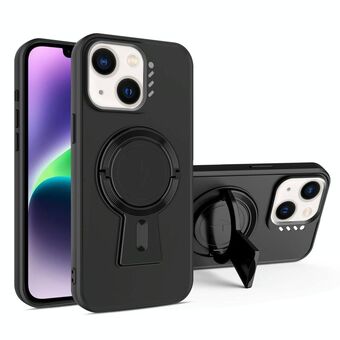 For iPhone 14 Plated Leather Grain Rotation MagSafe Holder Phone Case(Black)