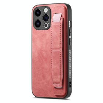 For iPhone 14 Pro Max Retro Wristband Holder Leather Back Phone Case(Pink)
