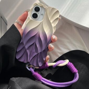 For iPhone 16 Thickened 3D Leaf Pattern Two-Color Oil-Sprayed TPU Phone Case with Strap(Purple Gold)