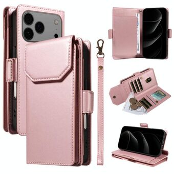 For iPhone 17 Pro Max Multi Card Wallet Leather Phone Case with Strap(Rose Gold)