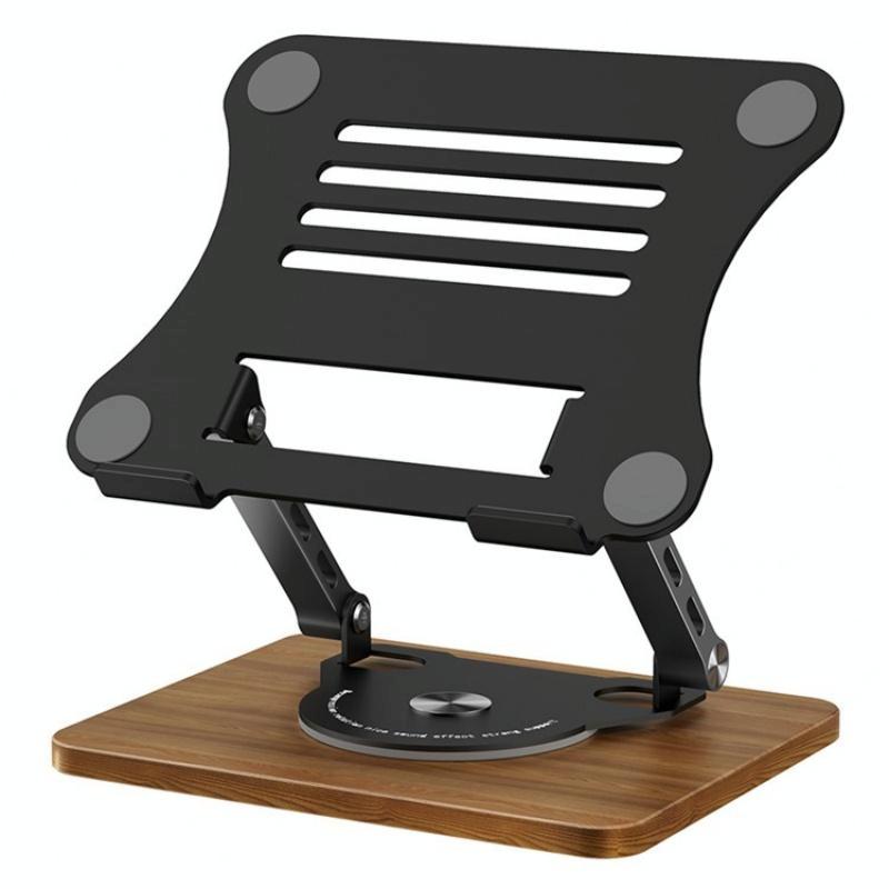 J31 Foldable 360-Degree Rotating Laptop Metal Wood Cooling Stand(Black)