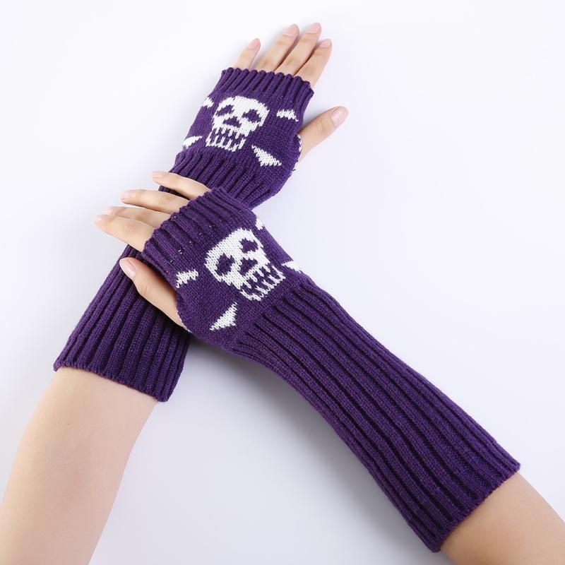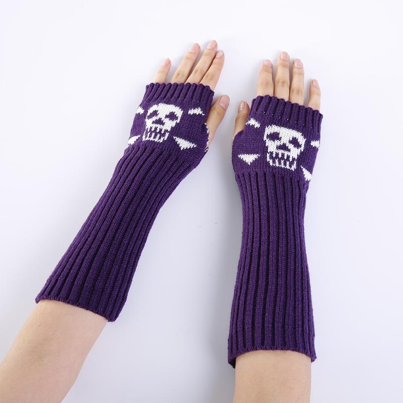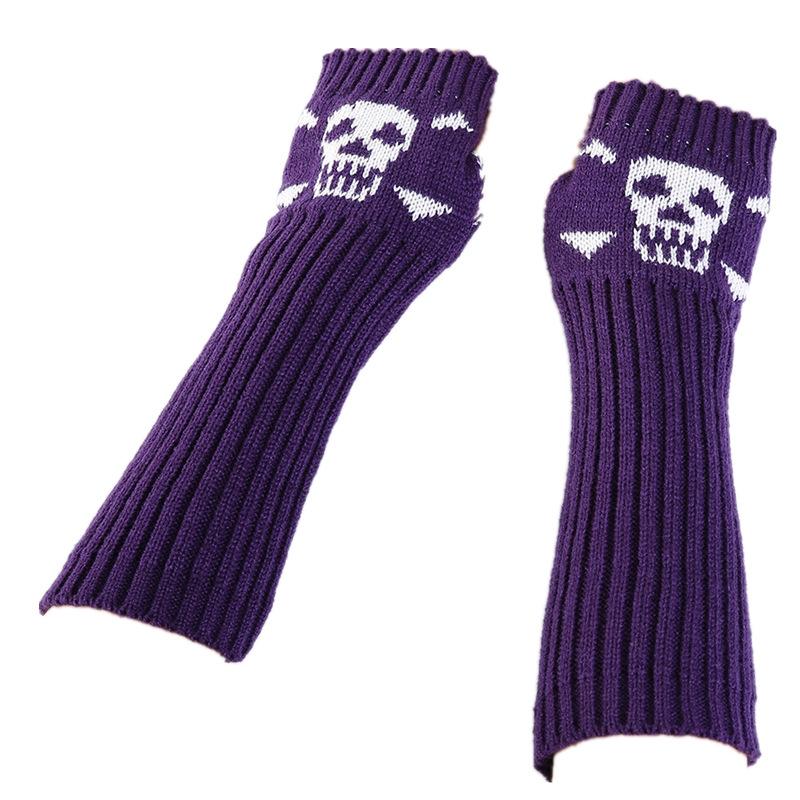 Jacquard Skull Fingerless Warm Gloves Knit Ski Gloves(Purple)