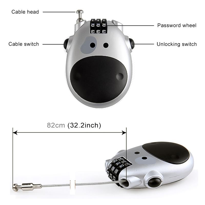 6. Retract the wire rope,and keep press its head, than you can roll the password wheel to change password.