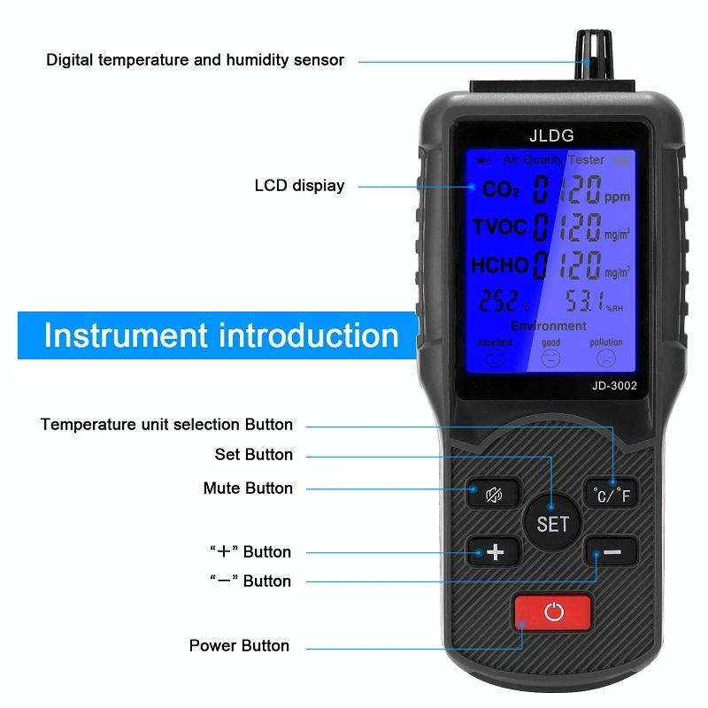 3. TVOC measuring range: 0.000 mg/m3~2.000 mg/m3