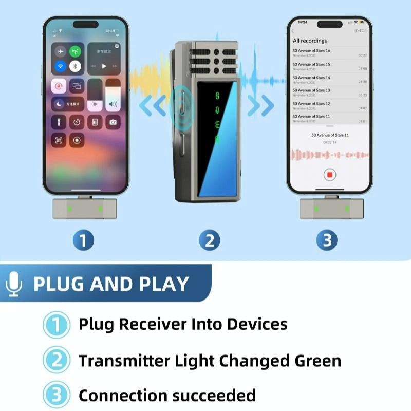 This product is a smart wireless microphone that provides professional-grade recording output. Plug and play, no APP required. It can be used in various scenarios such as webcasting, video Vlog shooting, program interviews, interview recordings, and video teaching.