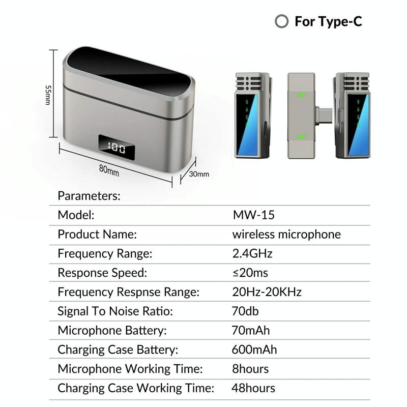 This product is a smart wireless microphone that provides professional-grade recording output. Plug and play, no APP required. It can be used in a variety of scenarios such as live streaming, video Vlog shooting, program interviews, interview recording, video teaching, etc.