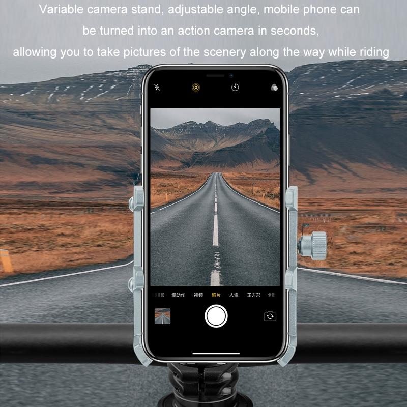 8. Variable camera stand, adjustable angle, the mobile phone can be turned into an action camera in seconds, allowing you to take pictures of the scenery along the way while riding.