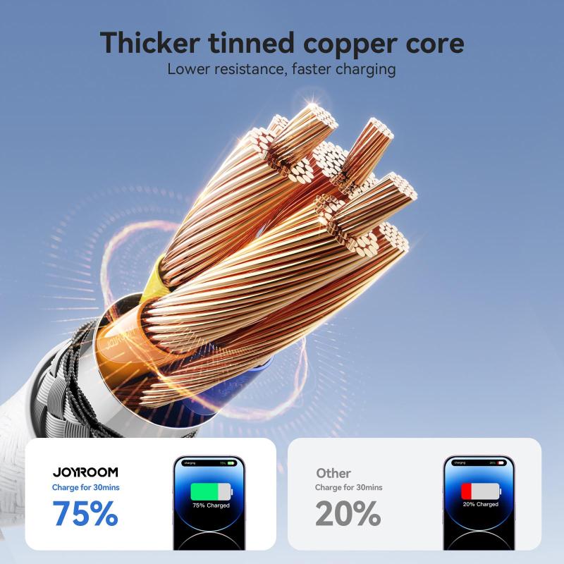 5. High charging efficiency: Thicker tinned copper core, lower resistance, faster charging