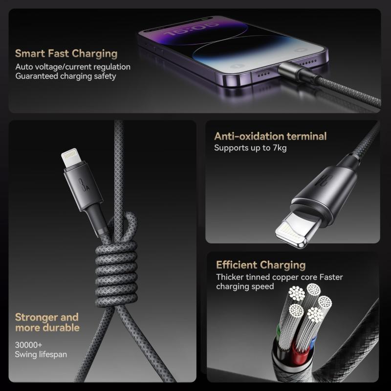 JOYROOM S-A50 3A 480Mbps Fast Charging Data Cable, USB-A to 8 Pin Cable, Length: 1.2m(Dark Gray) (JOYROOM)