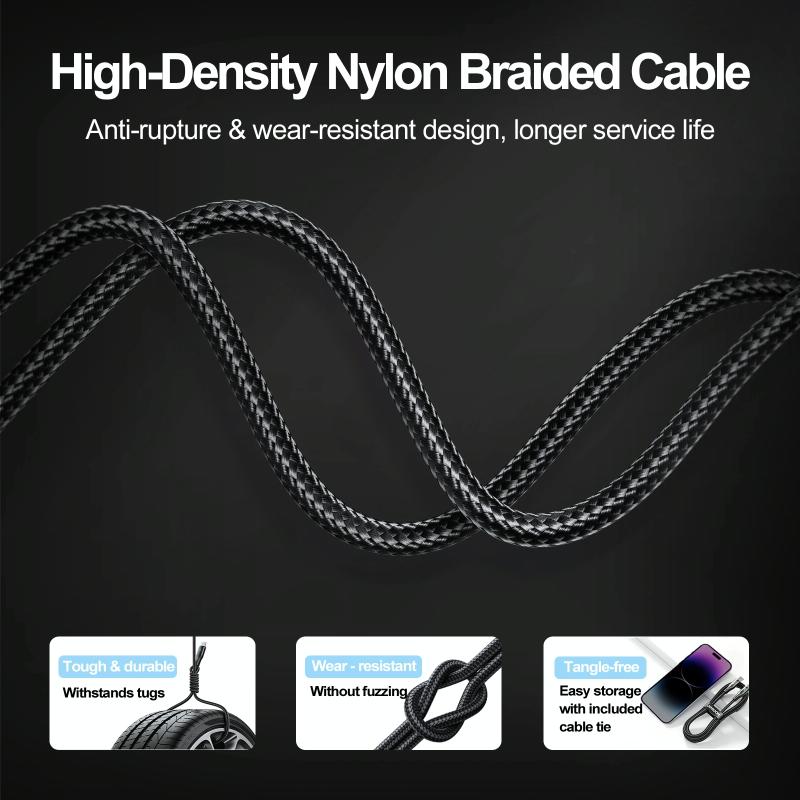 5. High density nylon braided jacket, withstands wear and tugs, longer-lasting life.