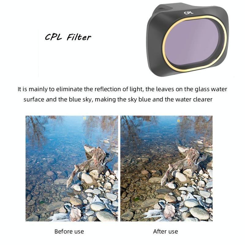 3. CPL filters increases color saturation, creating deep, rich scenic images. Helps to reduce the amount of light entering the lens. Removes unwanted reflections from non-metallic surfaces such as water or glass and glare from the sun.