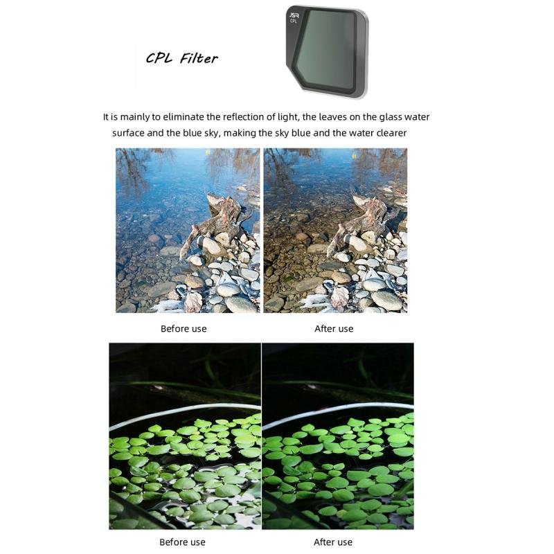 3. CPL filters increases color saturation, creating deep, rich scenic images. Helps to reduce the amount of light entering the lens.