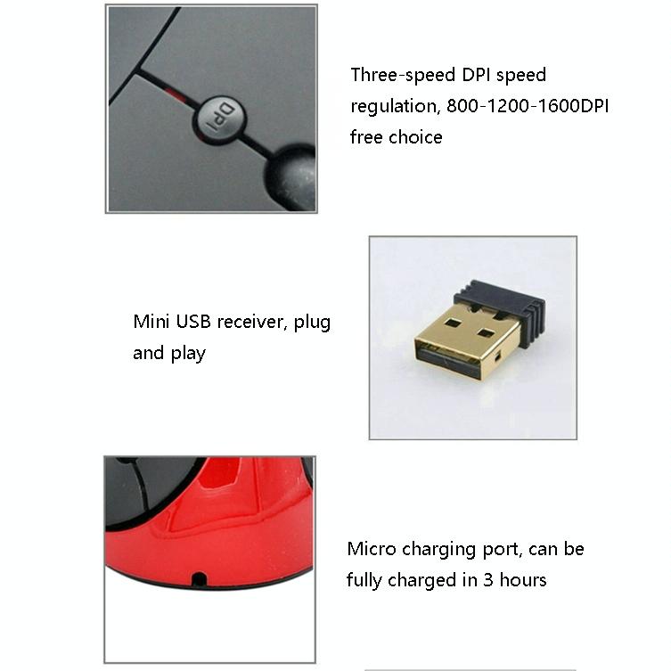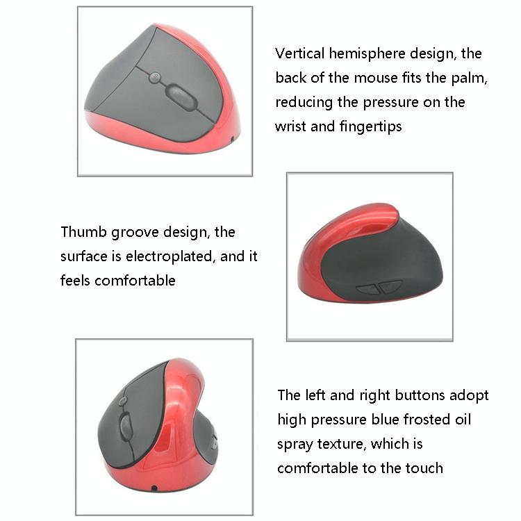 1. Vertical hemisphere design, the back of the mouse fits the palm, reducing the pressure on the wrist and fingertips