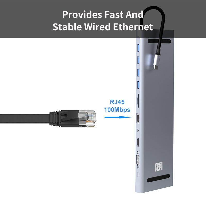 6. Stable and faster wired network: USB C to RJ45 100M ethernet port supports 100M ethernet, backwards compatible with 10Mbps RJ45 LAN.
