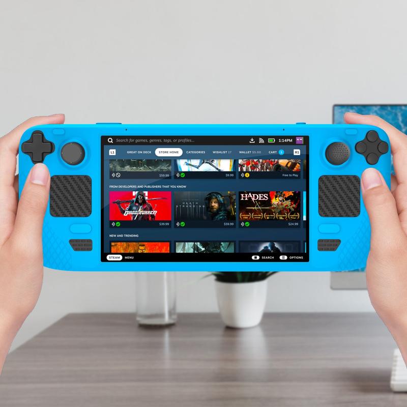 JYS JYS-SD011 For Steam Deck 7pcs/set Host Silicone Case With Joystick Cap+Touch Board Sticker Set(Blue) (JYS)