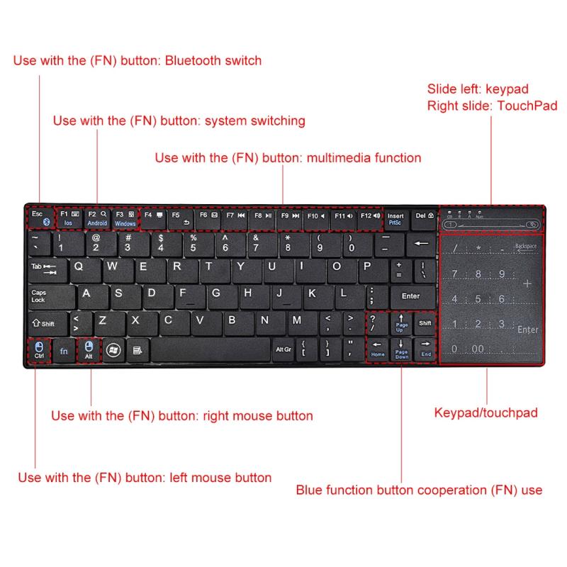 K-07 ABS Wireless Chargeable Bluetooth Touch Keyboard(Black)