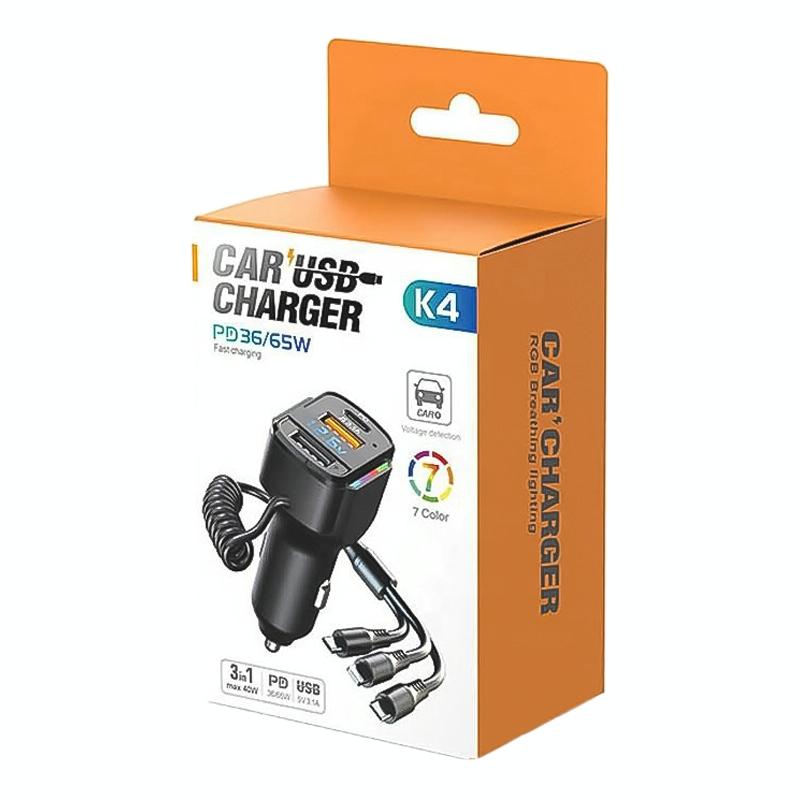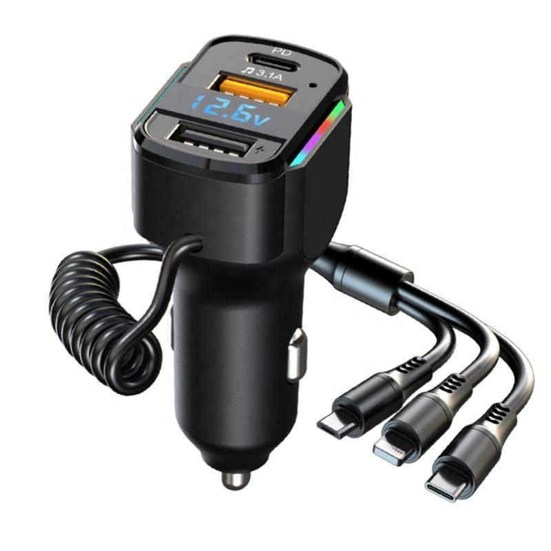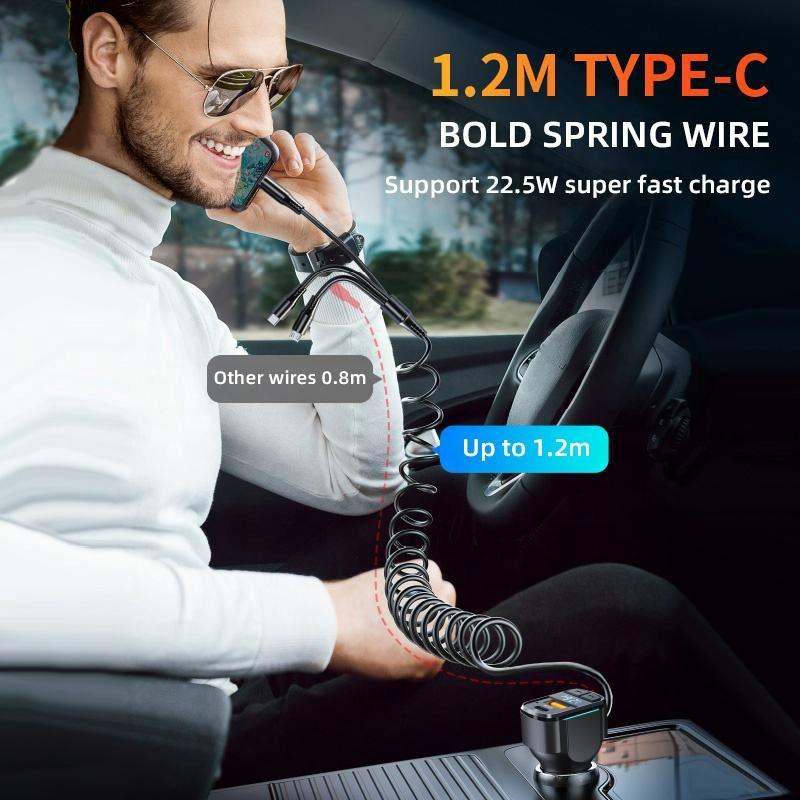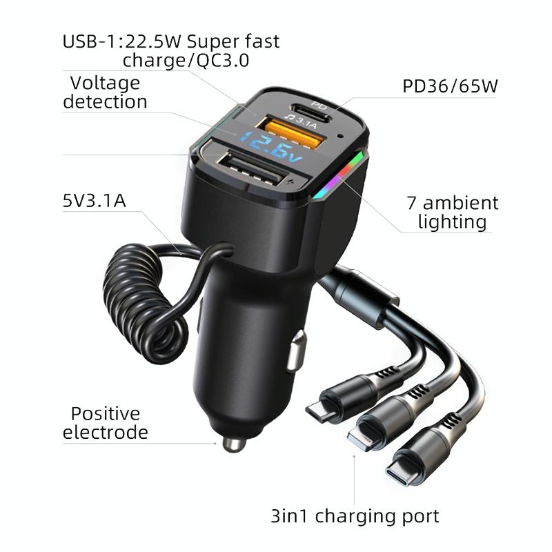 6. Comes with a 1.2m long one-to-three spring data cable, worry-free charging in the rear of the car