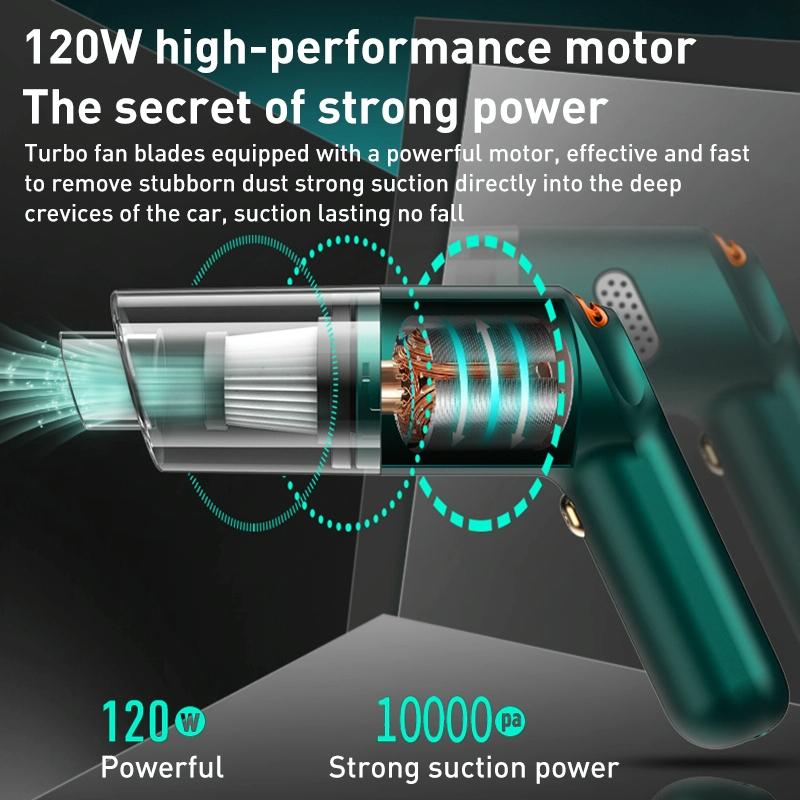 4. It has 10000Pa strong suction power and cleans thoroughly. The 120W super-power motor provides strong suction power, which can easily absorb hair, food residues, particles, etc.