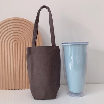 Portable Water Cup Coffee Bag Outdoor Thermal Insulation Solid-Color Canvas Cup Cover, Specification: Handheld (Light Gray)