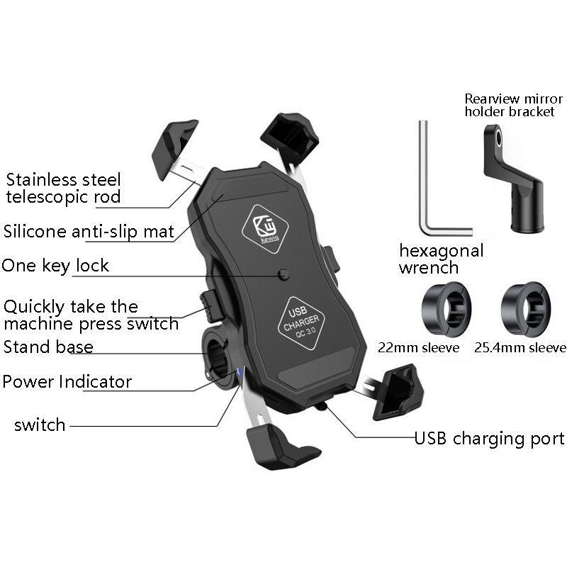 6. Installation range: motorcycle leading handlebar, rearview mirror installation, base diameter 22/25.4/32mm