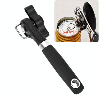Single Handle Professional Ergonomic Manual Side Cut Can Opener Bottle Opener (Black)