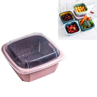 Creative Multifunctional Double-deck Drain Basket Kitchen Refrigerator Fresh Box Plastic Fruit Storage Basket with Lid(Pink)