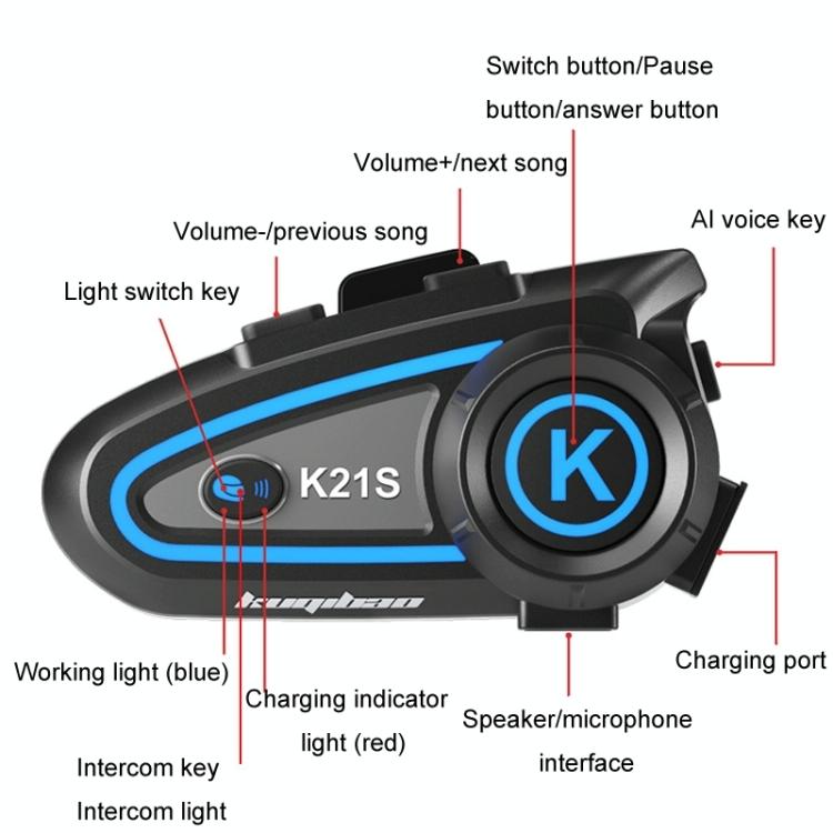 KUQIBAO K21S Motorcycle Riding Helmet Dual Intercom Bluetooth Headset With Lights(Hard Microphone) (KUQIBAO)