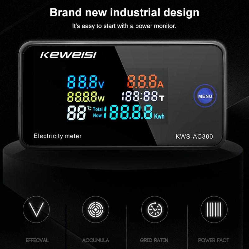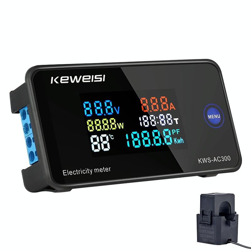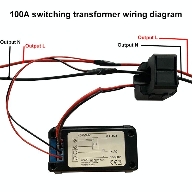 KWS-AC300-100A 50-300V AC Digital Current Voltmeter with Opening Transformer(Black)