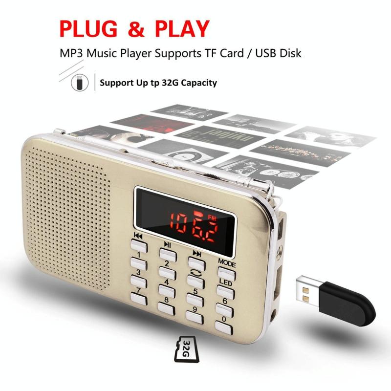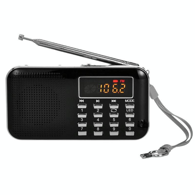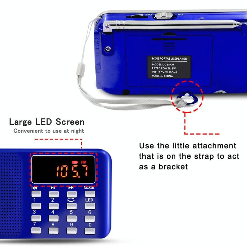 L-218AM MP3 Radio Speaker Player Support TF Card USB with LED Flashlight Function(Black)