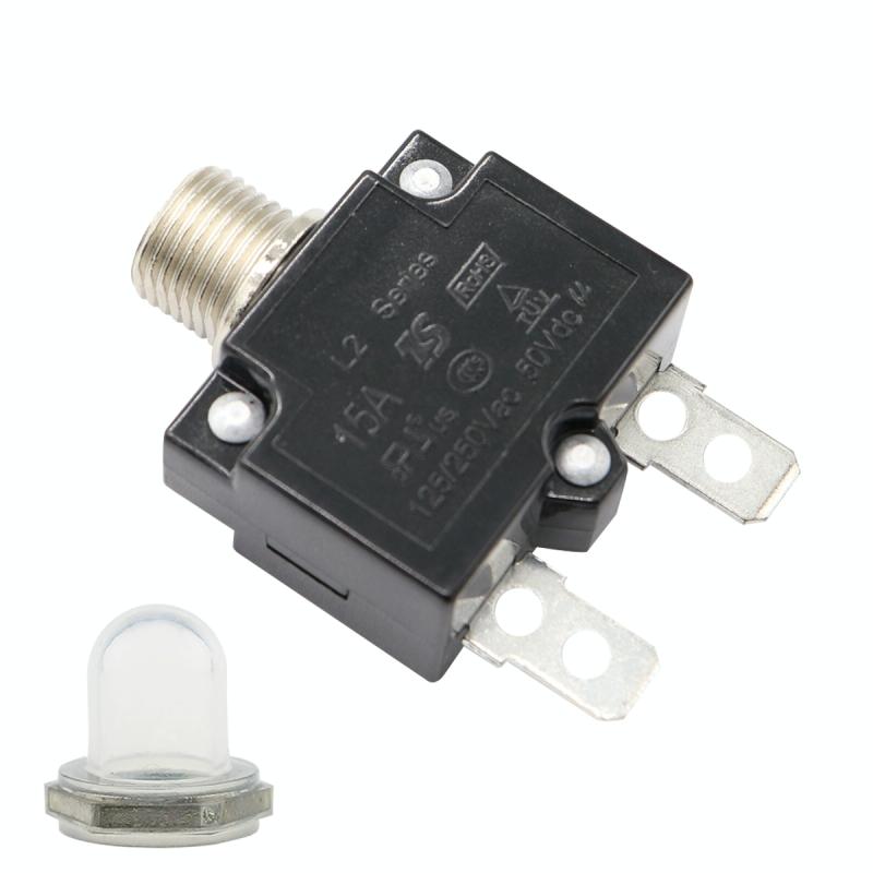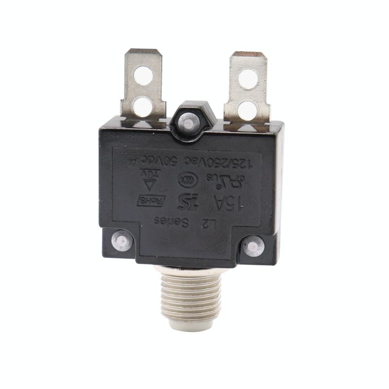 L2 Series 50V Car Overload Protector Manual Reset DC Circuit Breaker with Waterproof Cover, Current:15A