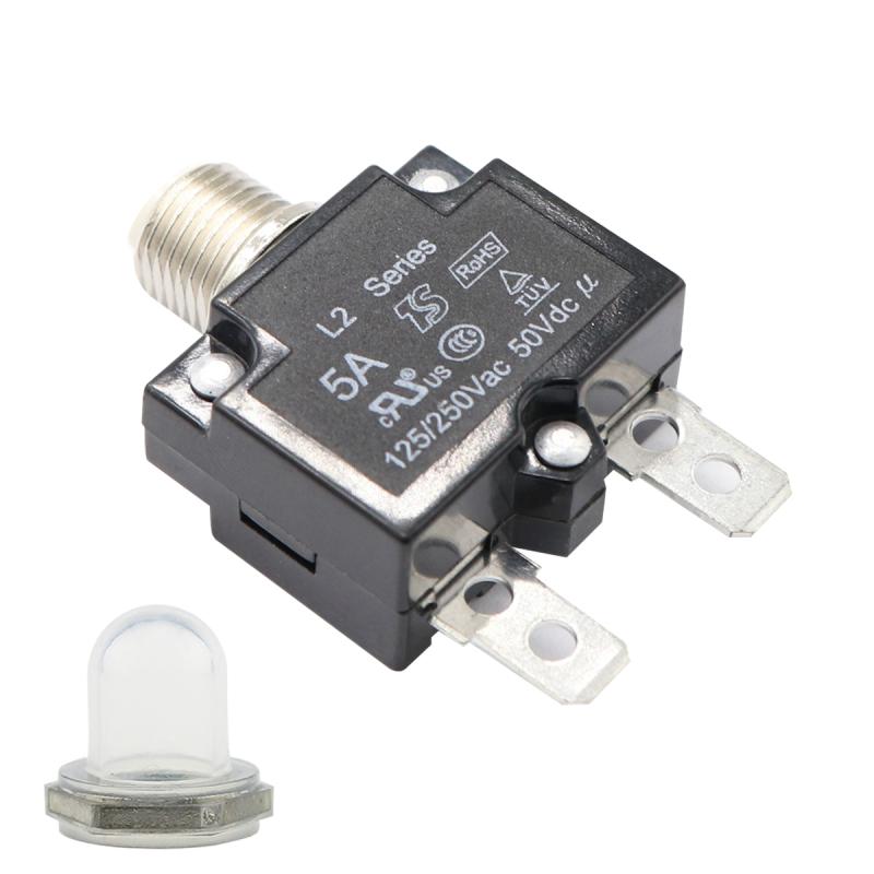 L2 Series 50V Car Overload Protector Manual Reset DC Circuit Breaker with Waterproof Cover, Current:5A