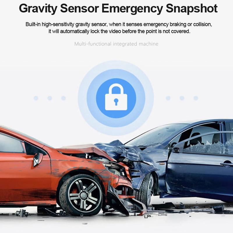 14. Gravity sensor emergency snapshot built-in high-sensitivity gravity sensor, when it senses emergency braking or collision, it will automatically lock the video before the point is not covered