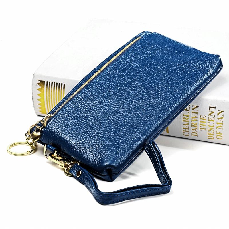 Ladies Multifunctional Cowhide Zipper Coin Purse Car Key Case(Blue)