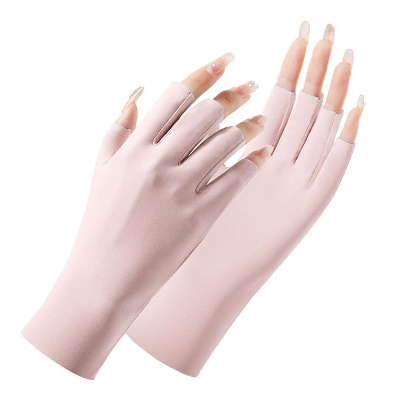 Ladies Sunscreen Gloves Half Finger Ice Silk Gloves,Style: Cent Finger(Pink)