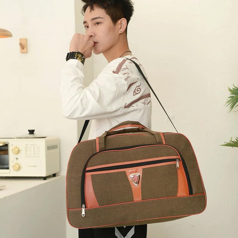 Large Capacity Travel Bag Men Short Trip Handheld Canvas Luggage Bag, Size: Small(Khaki)