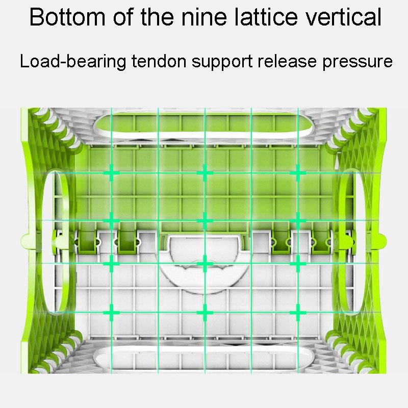 7. Thickened PP stool body, the bottom of the nine lattice vertical and horizontal, load-bearing tendon support release pressure