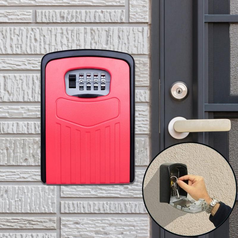 Large Password Lock Metal Storage Box Villa Security Box Wall Cabinet Safety Box(Red)
