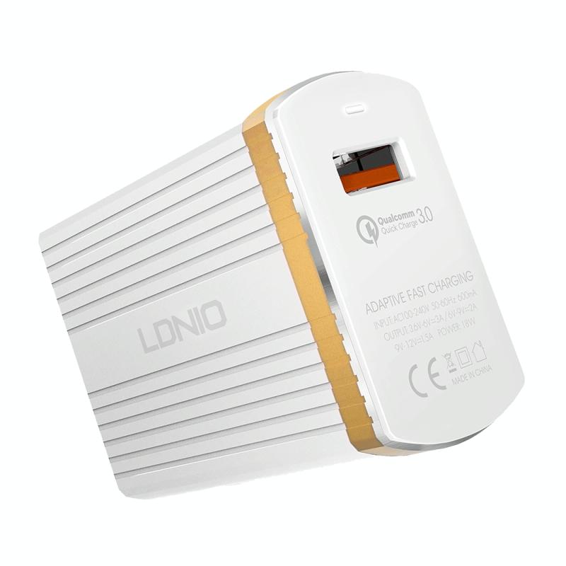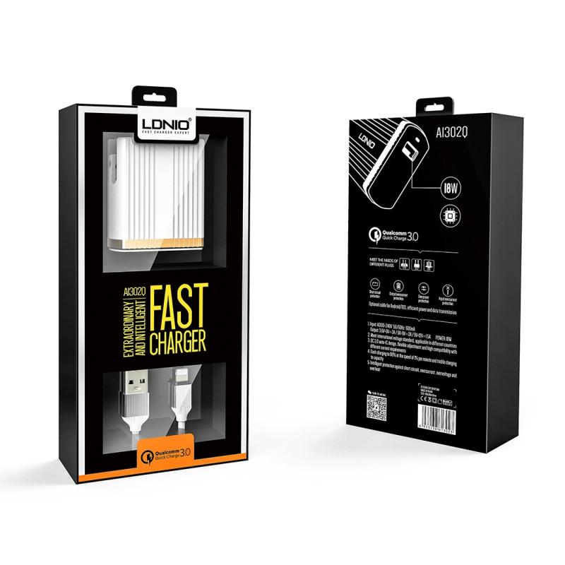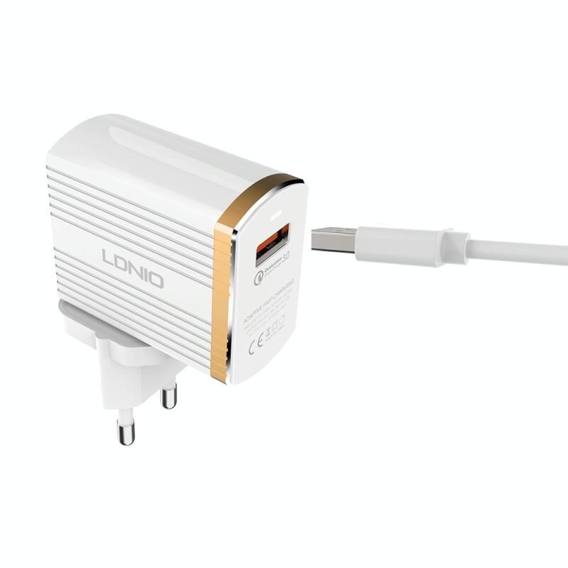 LDNIO A1302Q 2 in 1 18W QC3.0 USB Interface Grid Shape Travel Charger Mobile Phone Charger with Type-C / USB-C Data Cable, EU Plug (LDNIO)
