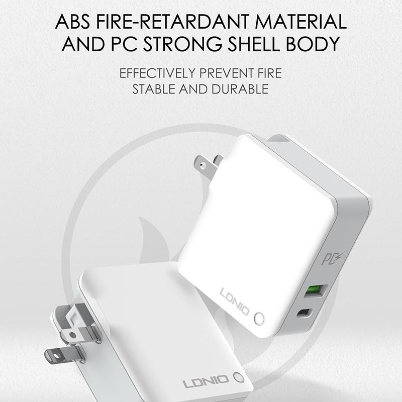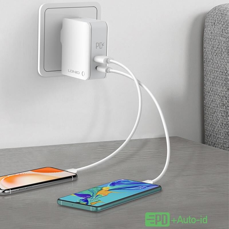 LDNIO A4403C 30W PD + Auto-id Foldable Fast Travel Charger with 1m Micro USB Cable, EU Plug (LDNIO)