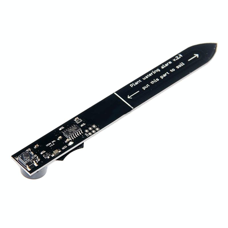 1. This is a plant watering alarm - as simple as that. You put it into the soil near a plant and it emits a tiny chirp when the soil is dry, reminding you to water the plant. It uses capacitive humidity sensing as opposed to resistive humidity sensing, this means, it does not make an electric contact with the soil, avoiding electrode corrosion and soil electrolysis and resulting in better accuracy and longer battery life.
