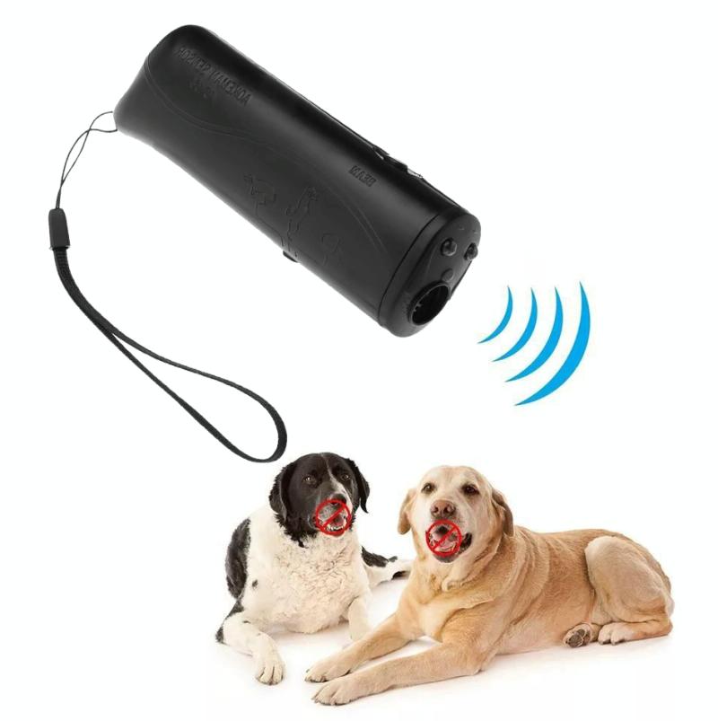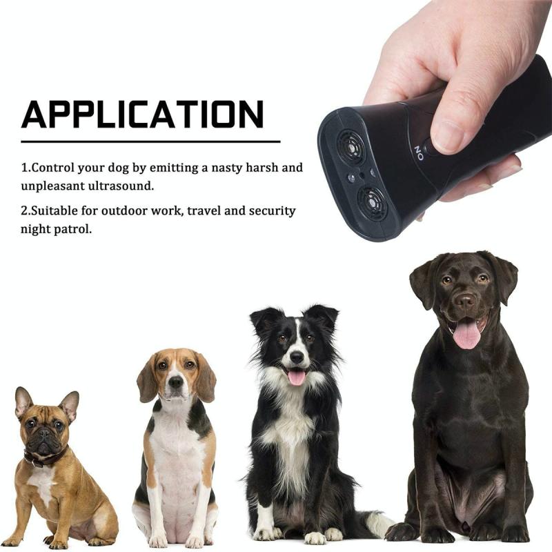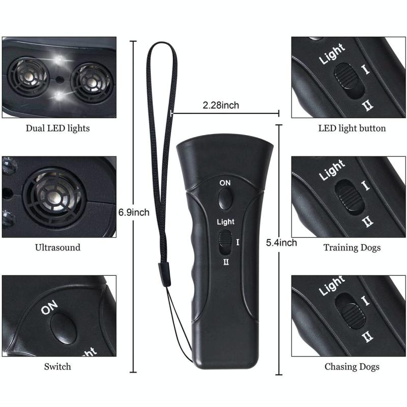 LED Flashlight Ultrasonic Dog Repeller Portable Dog Trainer, Colour: Single-headed Black(Colorful Package)