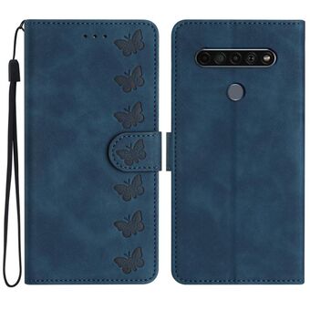 For LG K61 Seven Butterflies Embossed Leather Phone Case(Blue)