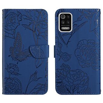 For LG K22 Skin Feel Butterfly Peony Embossed Leather Phone Case(Blue)