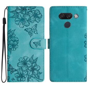 For LG K50 Cherry Blossom Butterfly Skin Feel Embossed PU Phone Case(Blue)