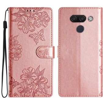 For LG K50 Cherry Blossom Butterfly Skin Feel Embossed PU Phone Case(Rose Gold)