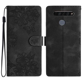 For LG K61 Cherry Blossom Butterfly Skin Feel Embossed PU Phone Case(Black)